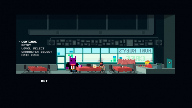 Gameplay. You pick a mercenary and run around 2d building killing and shooting. You have a main goal and three side goals to “3star” a level. Boring and annoying bullshit, forget about side goals. You have 5 hit points that will regenerate 3 seconds after being injured. You do everything you can and after you done you need to find an escape vehicle or helicopter. So what are the controls? You already know about arrows. You press “X” to slide you can hold it to slide a little bit longer. You also use X to slide into cover which is bullshit. Gameplay is too fast paced to slide into cover. I haven’t figure out cover shenanigans yet. Sometimes you go into cover sometimes you don’t .You can also slide into an enemy and if he doesn’t punch you back you can do a fast execution move. You use “C” to shoot and space to reload. Once again bullshit. With this kind of fast paced gameplay I end trying to run away floor up or down to reload in safety because covers are bullshit. Often I just catch a brain freeze and starts pressing wrong buttons because my brain is not wired for right handed movement controls. Finally “V” is for grenade toss when you have one.