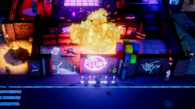 Party Hard 2 is a significant visual upgrade, shifting from flat pixel art to a 2.5D style. It maintains low-poly characters but integrates a modern engine for stunning lighting, shadows, and neon effects. This masterful execution of the retro-modern aesthetic makes the dense, multi-layered environments feel alive and is essential for observing and executing complex trap interactions.